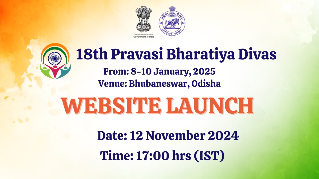 18th Pravasi Bhartiya Diwas will be held from 8-10 January 2025 in Bhubaneswar, Odisha. Its website will be launched jointly on 12 Nov 2024 at 1700 IST by Dr S Jaishankar, Hon'ble Minister of External Affairs and Shri Mohan Charan Majhi, Hon'ble CM of Orissa. The Embassy of India invite Indian diaspora members in Belgium & Luxembourg to register to participate in the #PBD.